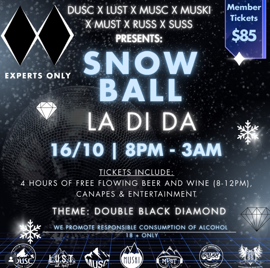 A huge cross-uni event bringing together all the snow teams for a night of dancing, chaos and peak-season energy.